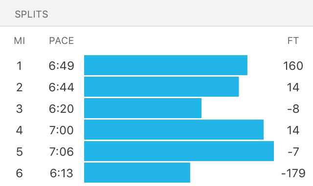 My splits from last year show how much of a struggle it was, especially in the 4/5 mile. It’s a rolling course with some sharp hills, which can take all momentum out of you.