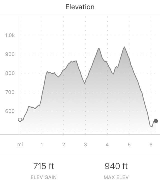 Still on the climb, 6:24 for my next mile. Settled in the position I would eventually finish. Just running through the motions, legs feeling fine, heart rate at an ultimate low. I averaged 136BPM for the full race! Still drop in descent just before you reach the 5k mark; clocking a 6 minute mile. Back onto the climb, left the drink station alone for today.
