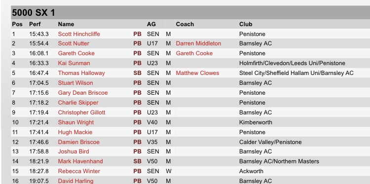 We set off relatively slow, bunching ourselves together. Ready to grind out the 12.5 laps for the 5k. Soon forming a bit of a group at the front, with the Two Scott’s, Tom and Me. I was feeling fresh and confident after my Parkrun PB the previous Saturday. Never breaking the 16:30 mark on the track. I had that much confidence that I believed I could break the 16 barrier today. Counting down the laps and not actually knowing the splits. Until I bothered to figure it out mathematically in my head with around 2 laps to go. Tom dropped off the pace, leaving me with the titans. As paced started to pick up, as we go round and round. I settled my pace, leaving them to go. In hindsight, wish I had held on for at least one more lap. Managing to cross the line in 16:08. A Track PB. On another day, I may have broken the 16 barrier, just maybe! But look at all those PB’s!