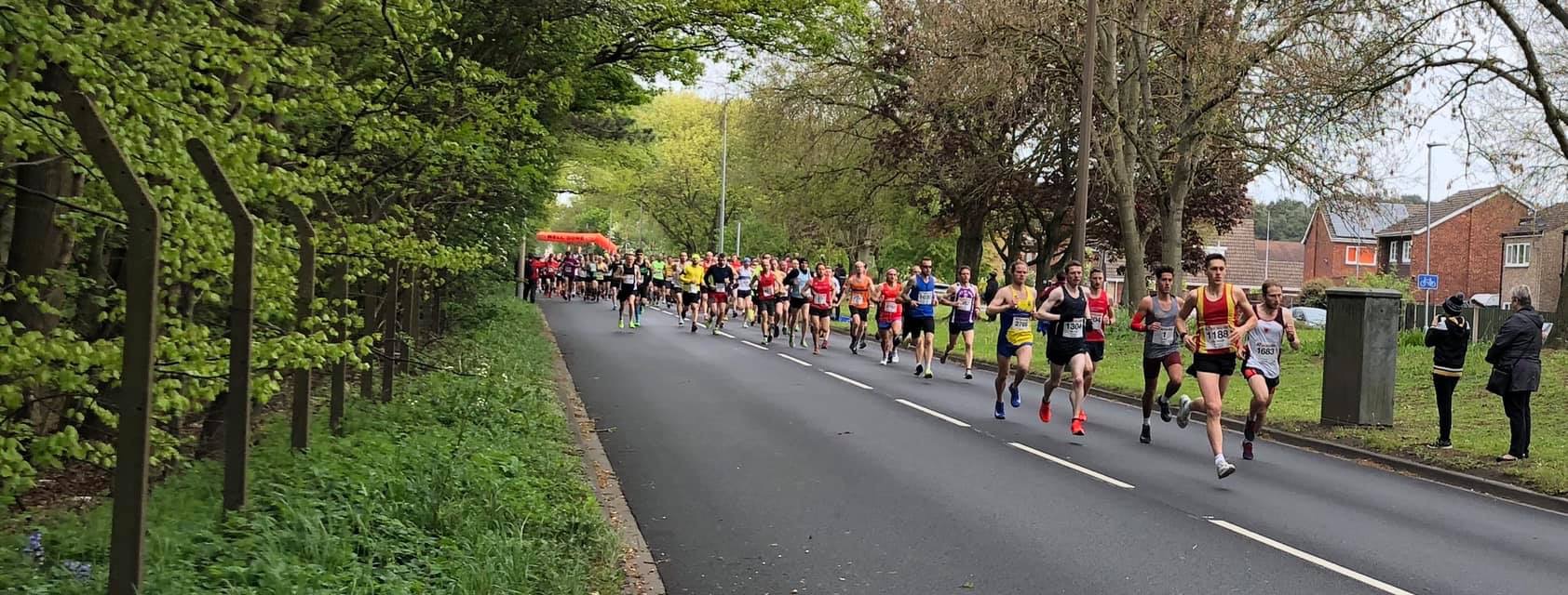 Into a more familiar pace and running steadily but fast, race pace. Legs feeling achey, tight and heavy. Normal. Must mean we’re running! Fast start usually at North Lincs. This is my 4th time here at this event, last running it in 2017; clocking a PB of 1:17:08. Started at the same place, came through that day with Lee Nash, as he hobbled with an injured hamstring into the athletics track for the finish.