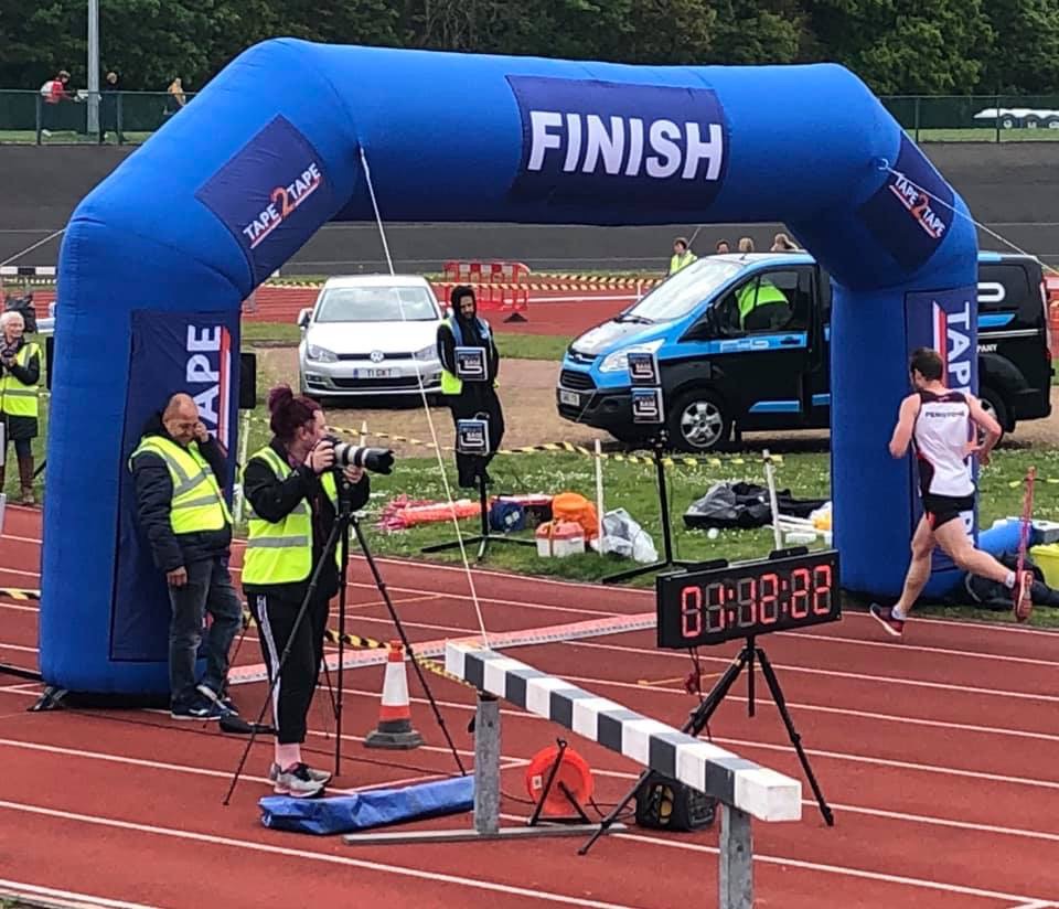 The athletics track not far away now, sprinting around. A loop and finish line sprint that I liken to the Hull Marathon finish as you bank around and into the stadium, a bit smaller here than the KCOM though! Onto the track, seeing the line. Wishing it was a little closer and crossing to clock: