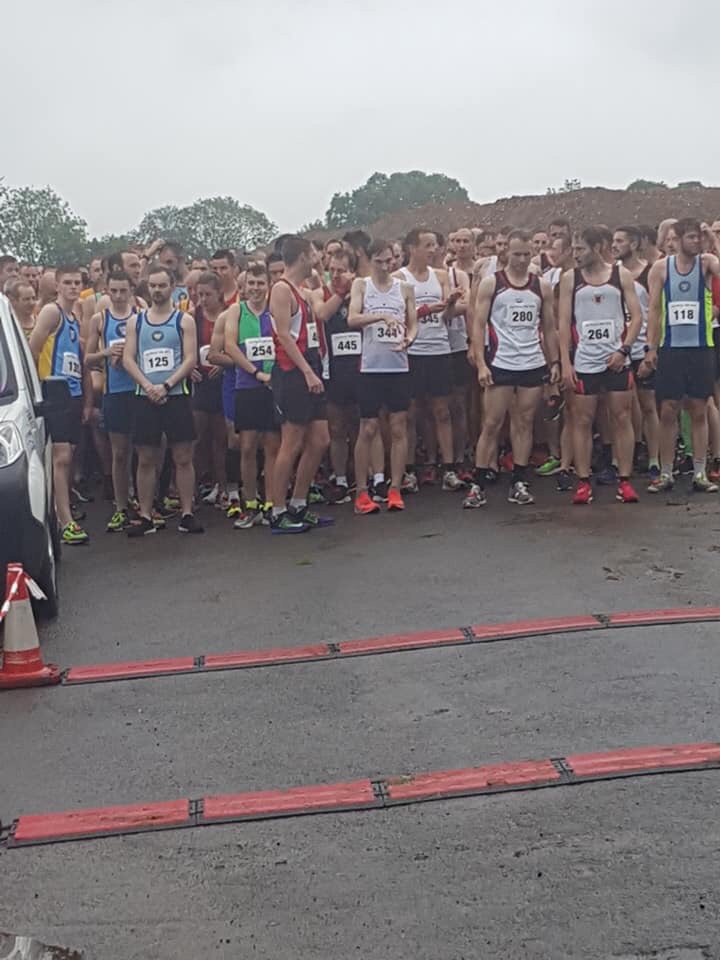 The race itself kicks off at 7:30, I got to Storthes Hall around 6.30 ish. Quickly got my big coat on, went to get my number from the well organised Simon Pike! Then back to the car to get it pinned on my vest, strange method of timing chips. A big bulky thing that is usually on an ankle strap to attach, but it was fastened on with wire instead to the laces. May pose some issues in the race! Back to the clubhouse anyway, quick warm up with Andy Heppenstall and Gary Briscoe. Spotted Scott whilst we was out as he was going to collect his number. Out and back on the first mile ish of the course, to trot back down the last mile ish of the course. Lovely! Back to the car for me, got my vest on, Vaselined my nips and jogged to the start. Intermittent downpours, foggy and generally crap weather. Hanging back at the front of Storthes Hall Hospital before making our way to the line. If anyone hasn’t ever heard of Storthes Hall Hospital, have a google! Looking around predicting who would be where for the Penistone Team, estimating our running order and ‘top 10.’ Potentially placing 12 runners in the top 10 selection, that’s also discounting plenty of runners who aren’t present that are capable of a sub 40 10k. Proud moment to see how far people have come.