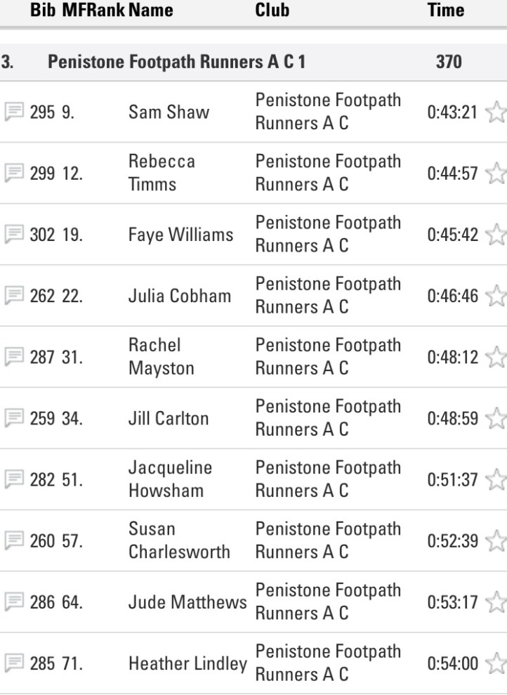 Off for a cool down I went, jogging back to the car, getting dry, nips didn’t bleed, bonus! Got dry and changed, then made my way to the clubhouse, starving with a protein drink in hand. Had a packet of crisps, from the food that was laid on for us, stomach is not a fan of bread so didn’t eat the sandwich. Then stood chatting with all the Penistone Runners and other runners from other clubs, recognisable faces, including ‘Pork Pie Guy’ from the Boundary or his formal name, Tom Shelton.