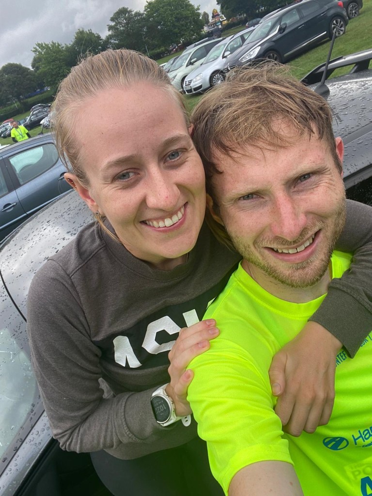 Sunday came around pretty quick, up and out of bed around 6.30, strawberry granola and a coffee down me. Naomi had some porridge, a bagel in the car and a coffee! We got to Pontefract around 7.45 parking in the car park near the swimming pool, surprised to see it has shutdown. I had a small jog, of a mile, to racecourse to go pick up my number, and chatted to plenty of people on the way. Whilst I was there, the heavens opened and the rain began, thunder echoing in the distance. Quick run back to the car and decided to move the car to the racecourse itself, I was unsure whether there was actual parking there. I’d parked initially next to the ticket machine and Naomi had spent the full duration with the car door open, telling people that parking was free on Sunday’s… she was on repeat when I got back… everyone else on the other hand was echoing the same sentiment, it’s their first race in 18 months. Completely in the unknown of what might happen!