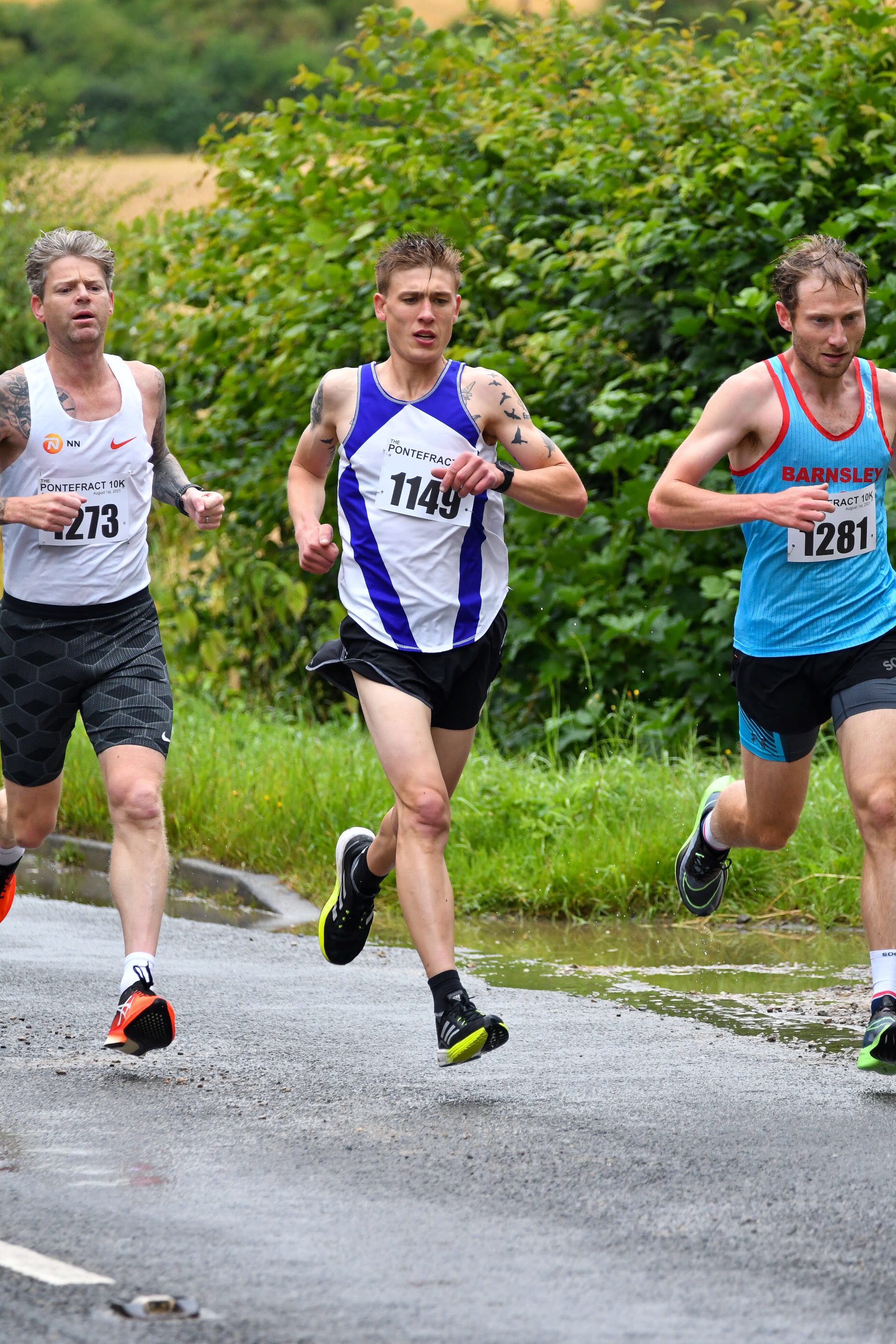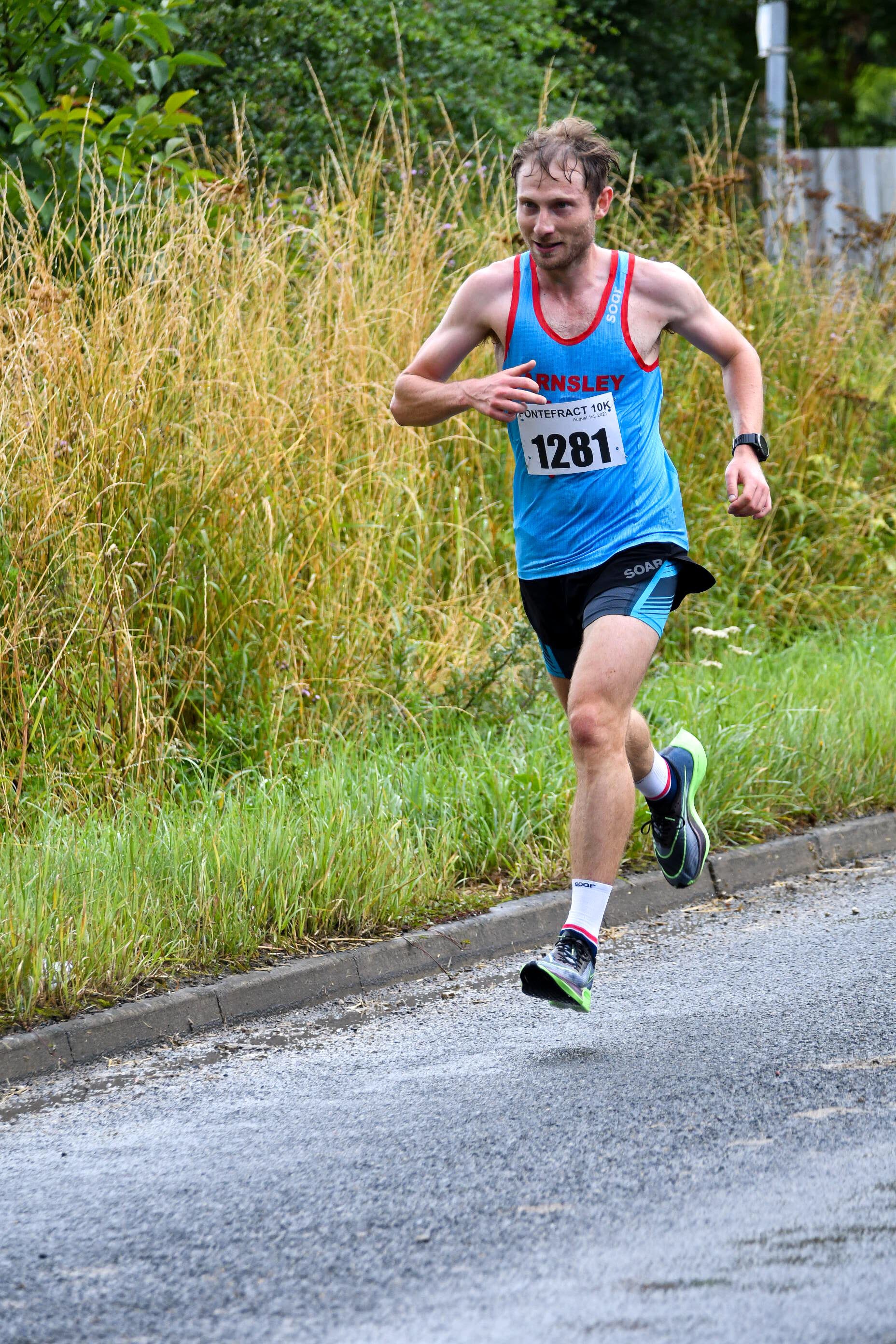 The course at Pontefract is largely downhill for the first half and largely uphill for the second half with a downhill finish. I was taking the race in town halves, hoping for the best and seeing where I would land me, position and time. Still in the lead pack as we navigated over the rolling downhills of the course, familiar territory for me around here. Knowing roughly where the hills were and how to combat them, time was flying by! Managed to clock the first 5k at the marker in 15.30 but 5k really went by in around 15.45 jostling myself for 1st and 2nd place at this point. Then we turned and the climb began, up and up. Just a case now of holding on and seeing how close to 15.45 I could run for the second half. Damage limitation taking into account the hills, my niggles, my injuries felt fine and my body was definitely in one piece.