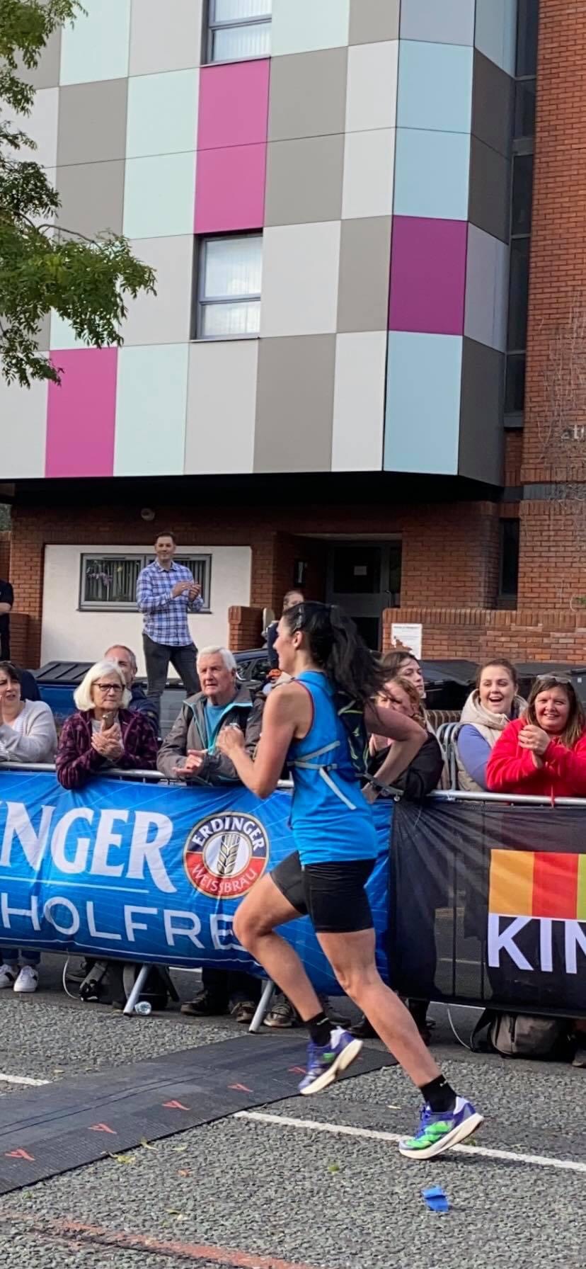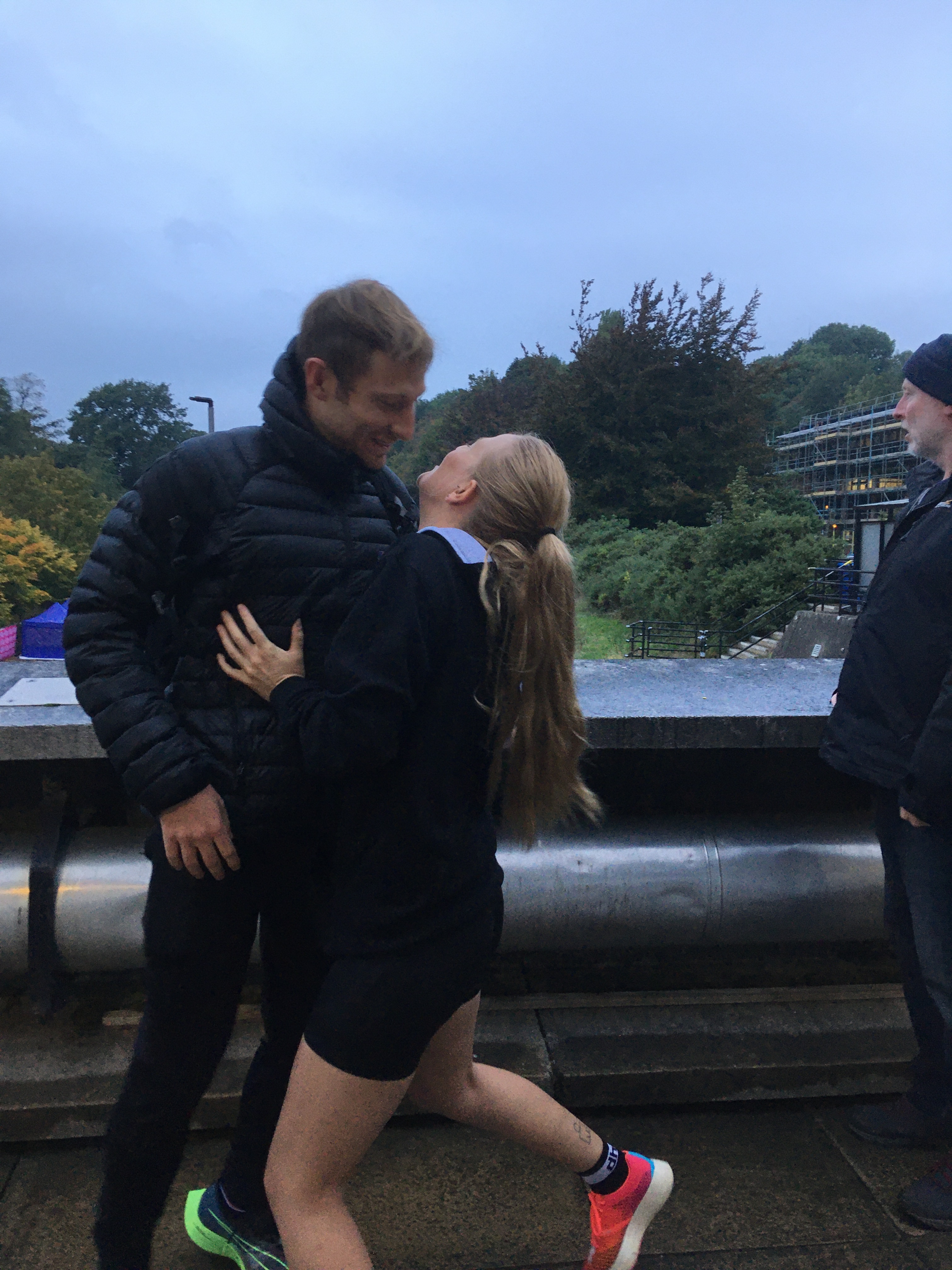 I got up off of the wall, jacket on and propped the fence up with the finish line in sight. Eye on the tracker, eye on the line. Naomi still on for 3.07 on the tracker. A lot quicker than we had anticipated. Glancing at the clock. Then seeing her coming down the straight, Michael Grain next to her and getting her home. Naomi had a pacing tactic, writing 5 mile splits down and hoping to be on for 3.10; but in planning that we accounted for ‘fade.’ Hoping she wouldn’t fade too much to still dip under 3.14. She had run most of race like myself on her own, having a more people around her but still on her own. She managed to pick Michael up around mile 21 and ran the last 5 whilst pushing through with him, picking others off as they go. In her build up she’s been the opposite end of a spectrum to me, she’s averaged around 28 mile weeks, but the training adaptation has come from the fact that she hasn’t been as consistent in her training before. The regular efforts at 10k and Half Marathon pace will have helped, as well as the Parkrun efforts on a Saturday morning. All quicker than marathon pace but all in all, they make marathon pace feel slow and much, much easier! It’s all relative after all.